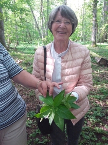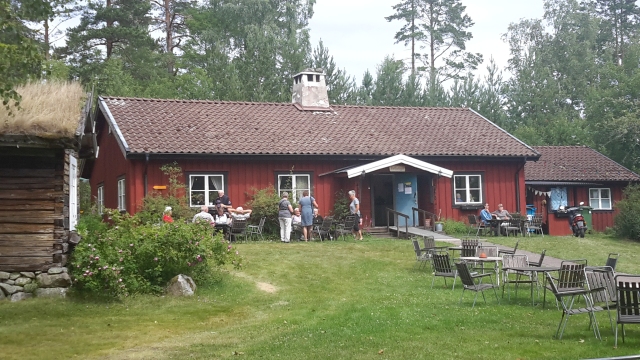 Efter shopping i butiken och rundvandring i hela anläggningen, bl.a. en innehållsrik kryddgård, åkte vi vidare till Kulturreservatet Pershyttan. Där fick vi en sällsynt skicklig informatör. Hon kunde beskriva en slaggklump, alltså restprodukten från en masugn, med dess alla fyra ingredienser så man nästan begrep det. Hon höll på i nästan tre kvart. Efter föreläsningen besåg vi den rekonstruerade stånggången i närheten. Ja, det var verkligen en givande eftermiddag.
