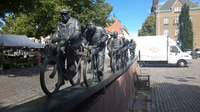 Vi for först till Västerås och där gick vi en längre stadsvandring, nästan ända ner till hamnen i Mälaren. Guiden var mycket informativ och kunnig. Hon berättade Västerås’ historia sedan urminnes tider. Vasaslottet, Stadshuset och flera andre bemärkta byggnader passerades. Vi gick genom stadsparken, såg ett par berömda statyer, Hästen, som vadade över ett vattendrag och Cykelburna ASEA-arbetare på rad, och passerade även ASEA-komplexet. I storlek tävlar Västerås med Örebro och uppnår numera över 150,000 inv.