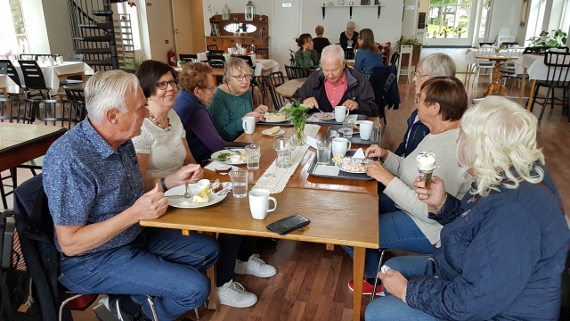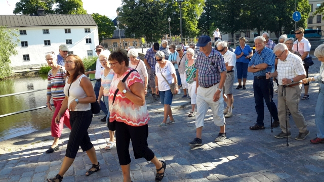 Sista besöket på vår resa blev Wadköping, en historisk minnesstadsdel i Örebro. En kunnig guide visade oss runt och berättade om de historiska byggnader som flyttats dit. Eftermiddagskaffet avnjöts och det fanns även tillfälle för inköp i pittoreska butiker. Vi tackade vårt värdfolk från folkhögskolan, som lett oss ända hit, och for sedan snabbt de 20 milen hem till Grästorp.